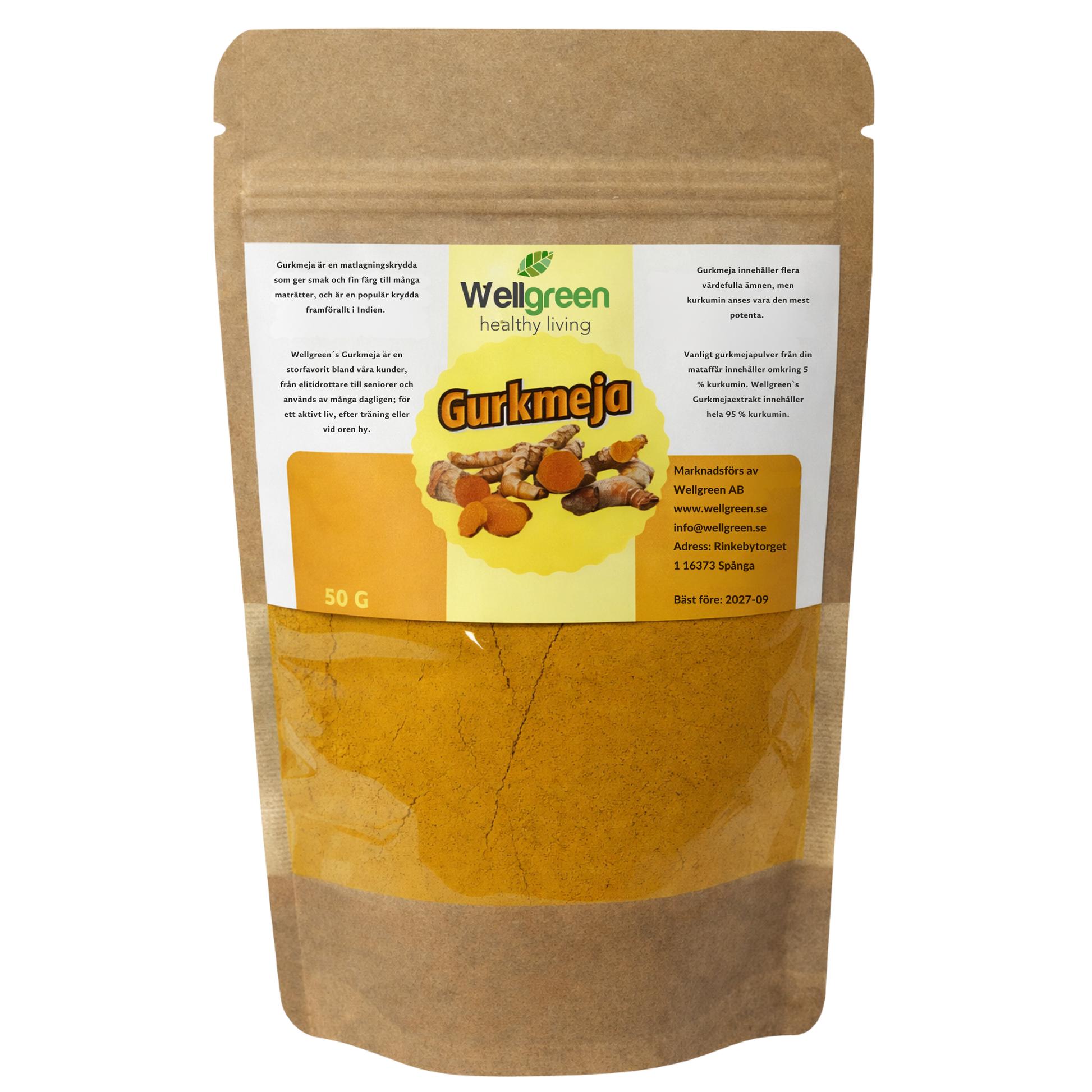 Gurkmeja Àr en naturlig rot som anvÀnts i generationer inom traditionell matlagning och kost. VÄrt gurkmeja pulver Àr tillverkat av noggrant utvald gurkmejarot och Àr 100 % rent, finmalet och utan tillsatser.