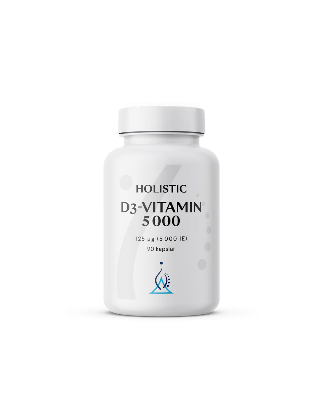 Holistic D3-vitamin 5000 innehåller vitamin D3 som är samma form som bildas i kroppen när vi vistas i solen. D-vitamin bidrar bland annat till immunsystemets, musklernas och benstommens normala funktion, till att bibehålla normala tänder, normalt upptag av kalcium och fosfor samt till normala kalciumnivåer i blodet.